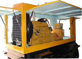 苏尼特左柴油发电机组/移动柴油发电机组设计独具创新,机动性高、重心低、制动安全、制造精良、外形美观。 苏尼特左拖车车架采用槽梁焊接成框架结构,节点选择合理、强度高、刚性好;同时装有钢板弹簧悬架结构;拖车采用高度可调节插销式牵引架,适用于各种高度牵引车;采用圆形钢管焊接直通式车轴,结构紧凑,安全可靠;车架四角设有机械式支撑装置,配备惯性行车制动、驻车制动和脱离应急制动,确保机组在各种状况下的安全;车架前端设有支撑轮,具备承受机组垂直载荷的功能的同时还具备导向功能;整车配备转向和刹车指示灯,同时装有尾灯标准插头